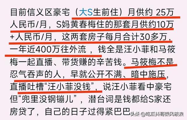 汪宝儿出生,马筱梅本以为自己有底气和S一家抗衡了,不曾想汪小菲宁给前妻一家每月还40万的房贷,也不愿考虑结束租房子生活,在台北再买一套豪宅。